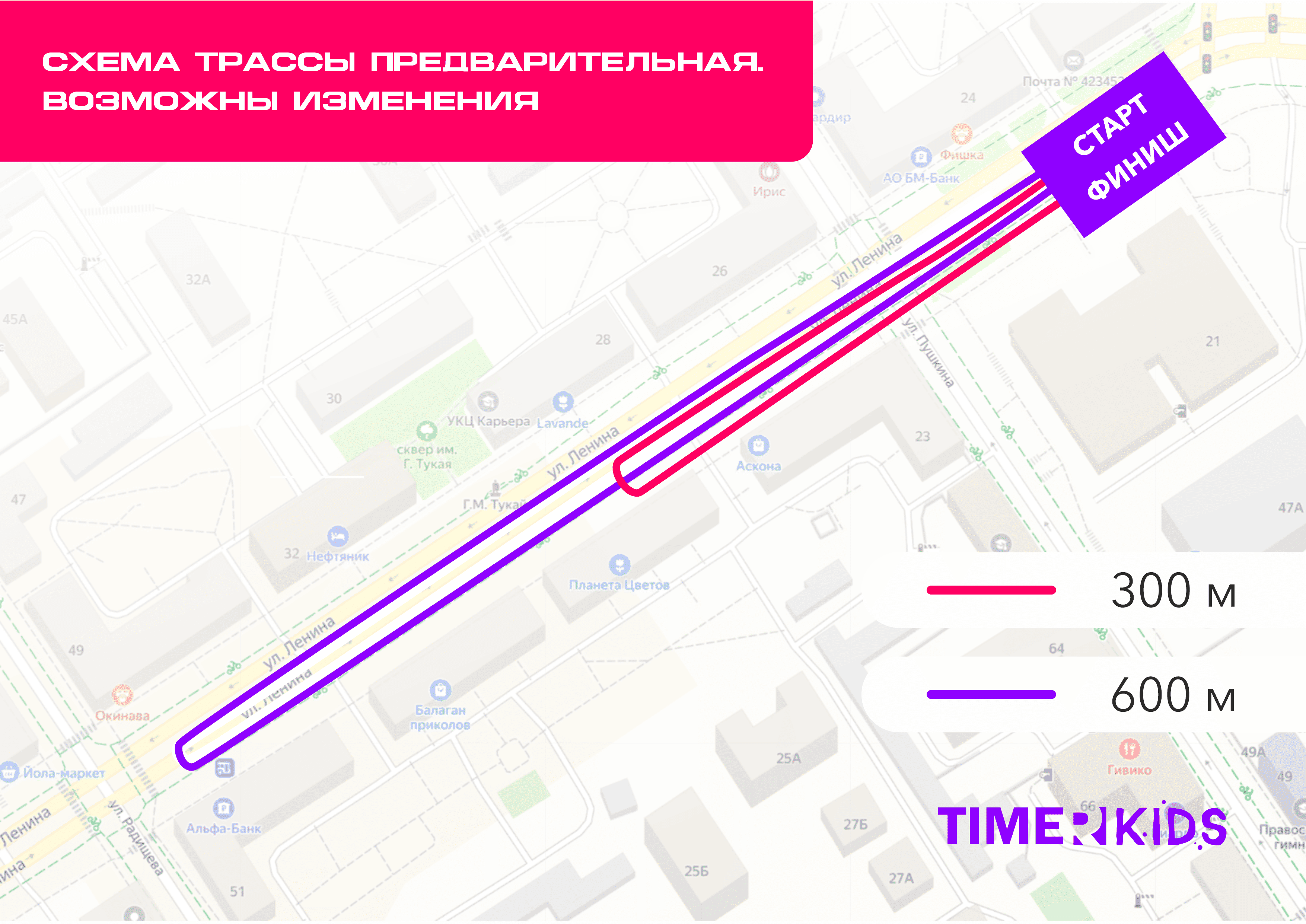 Место выдачи стартовых номеров: Молодежный центр (г. Альметьевск, ул. Ленина, д. 21). На карте.