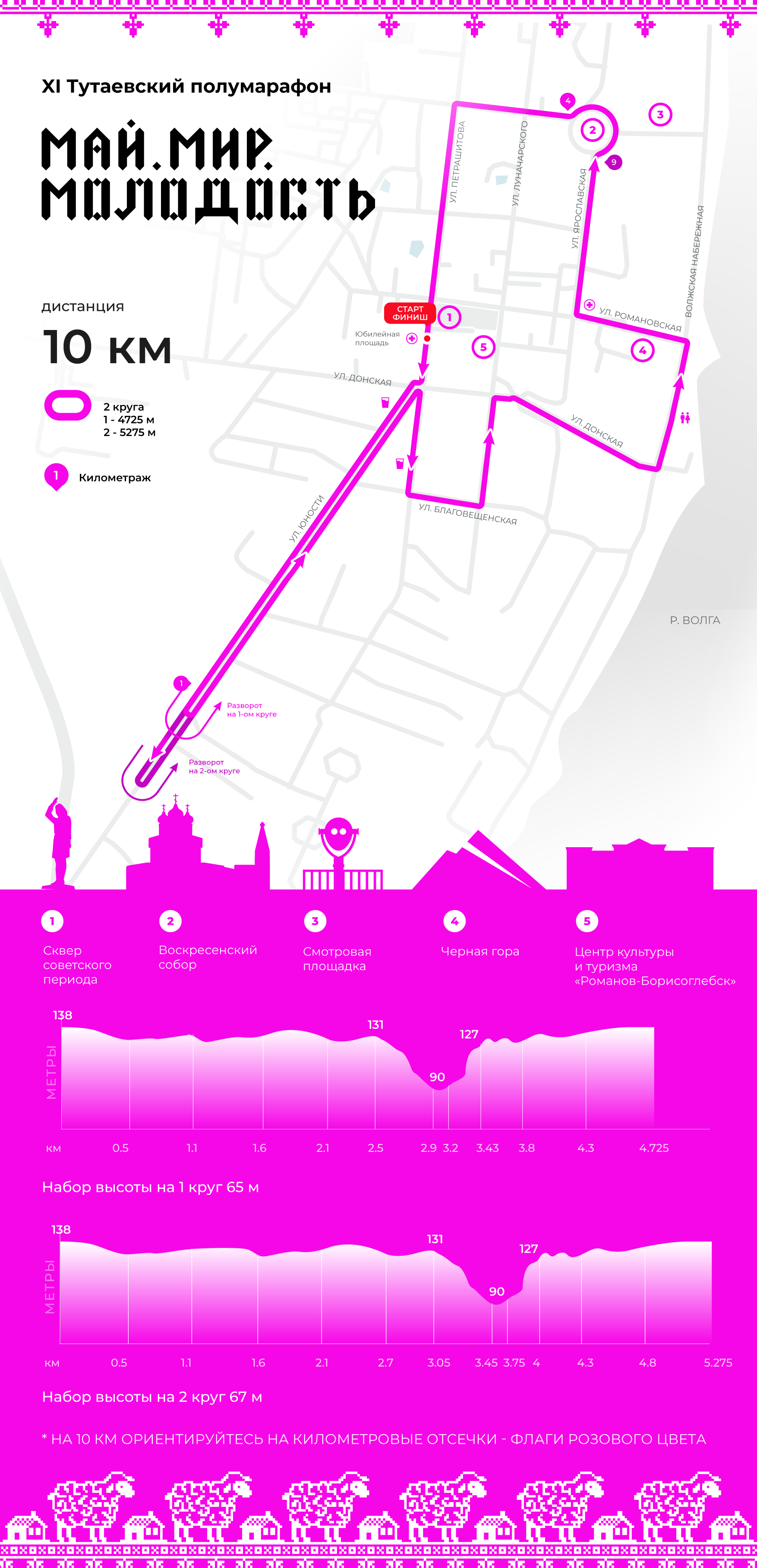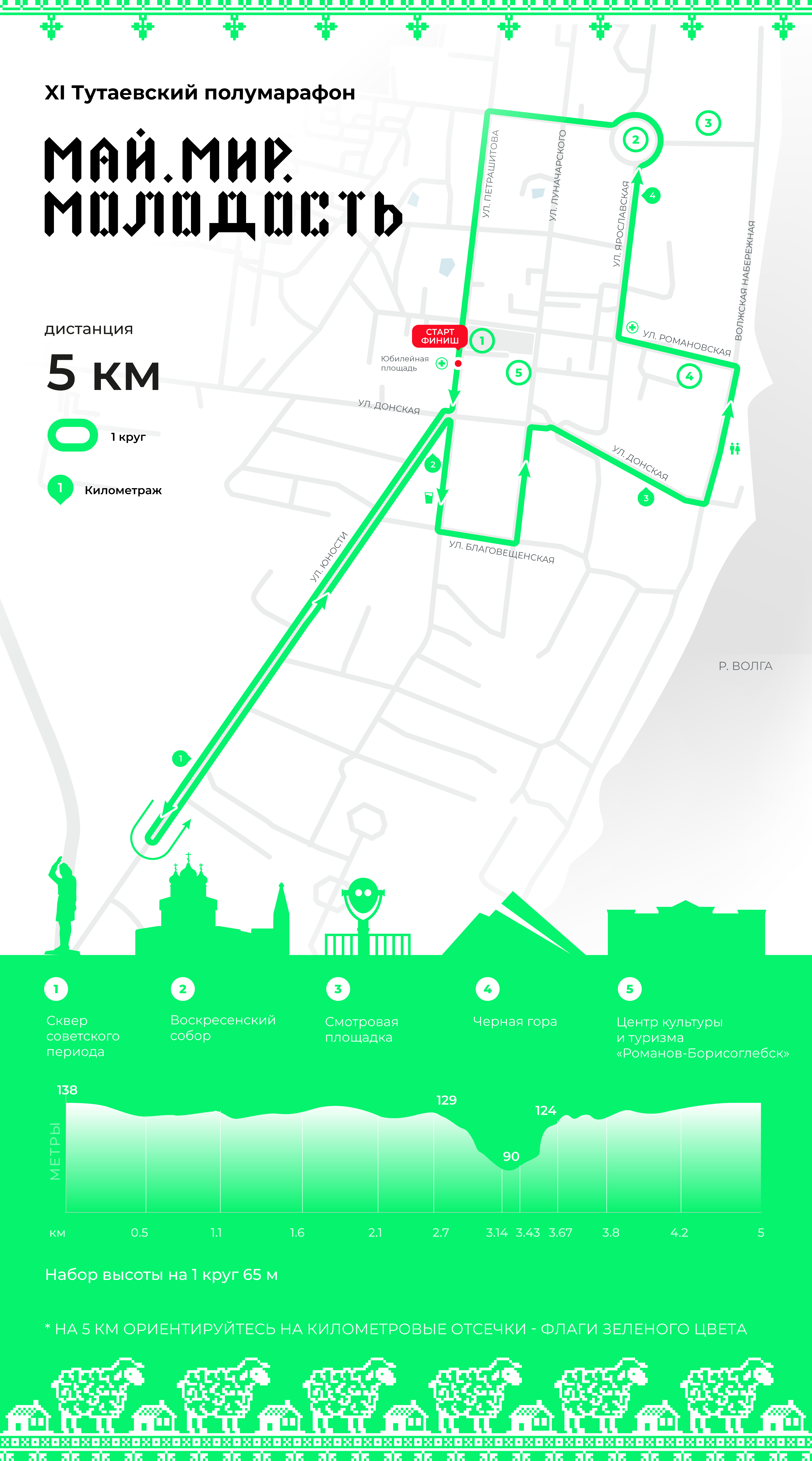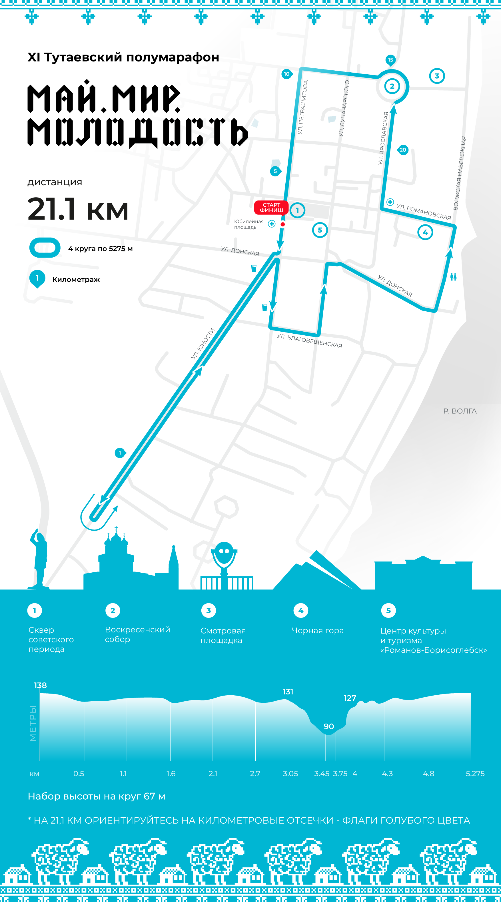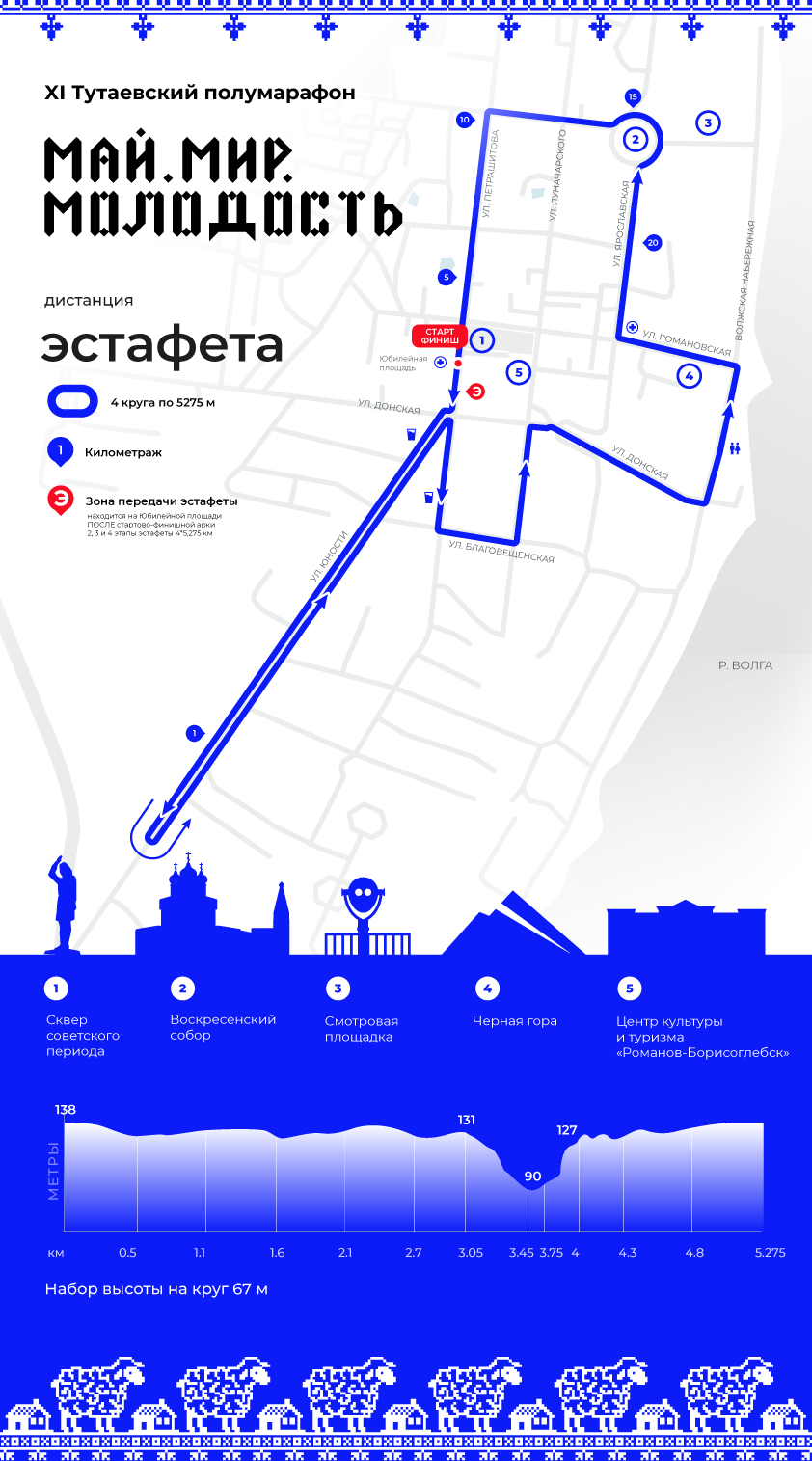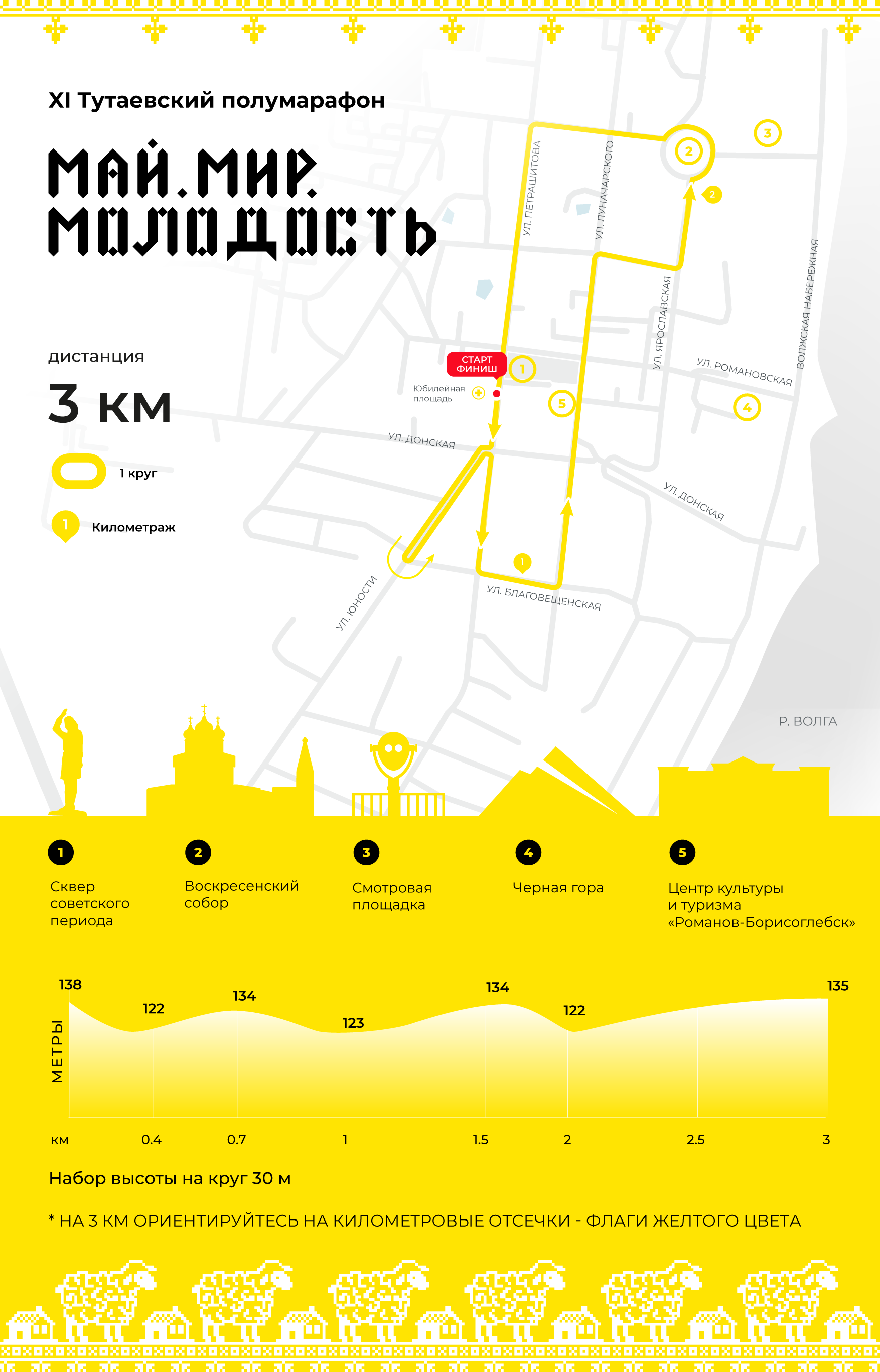 Отправляемся в первое беговое путешествие по Золотому кольцу 1 мая и везем свои кроссовки в Тутаев — уютный город Ярославской области, расположенный на двух берегах Волги. Наш забег пройдет на правом берегу! Тутаевский полумарафон «Май. Мир. Молодость» проводится с 2015 года. Один из символов Тутаева — романовская овечка. В XVIII веке по указу самого Петра I в романовские вотчины (в те времена это была левая часть современного города) из Силезии приехали два овчара, чтобы обучить местных жителей мастерству селекции. Получив знания, романовцы смогли вывести необыкновенную породу, которая получила мировую славу. Шерсть этой овечки — лучшая для валки валенок. В народе о ней сложили поговорку: «Веса в ней четыре фунта, а жару, что от четырех печей».