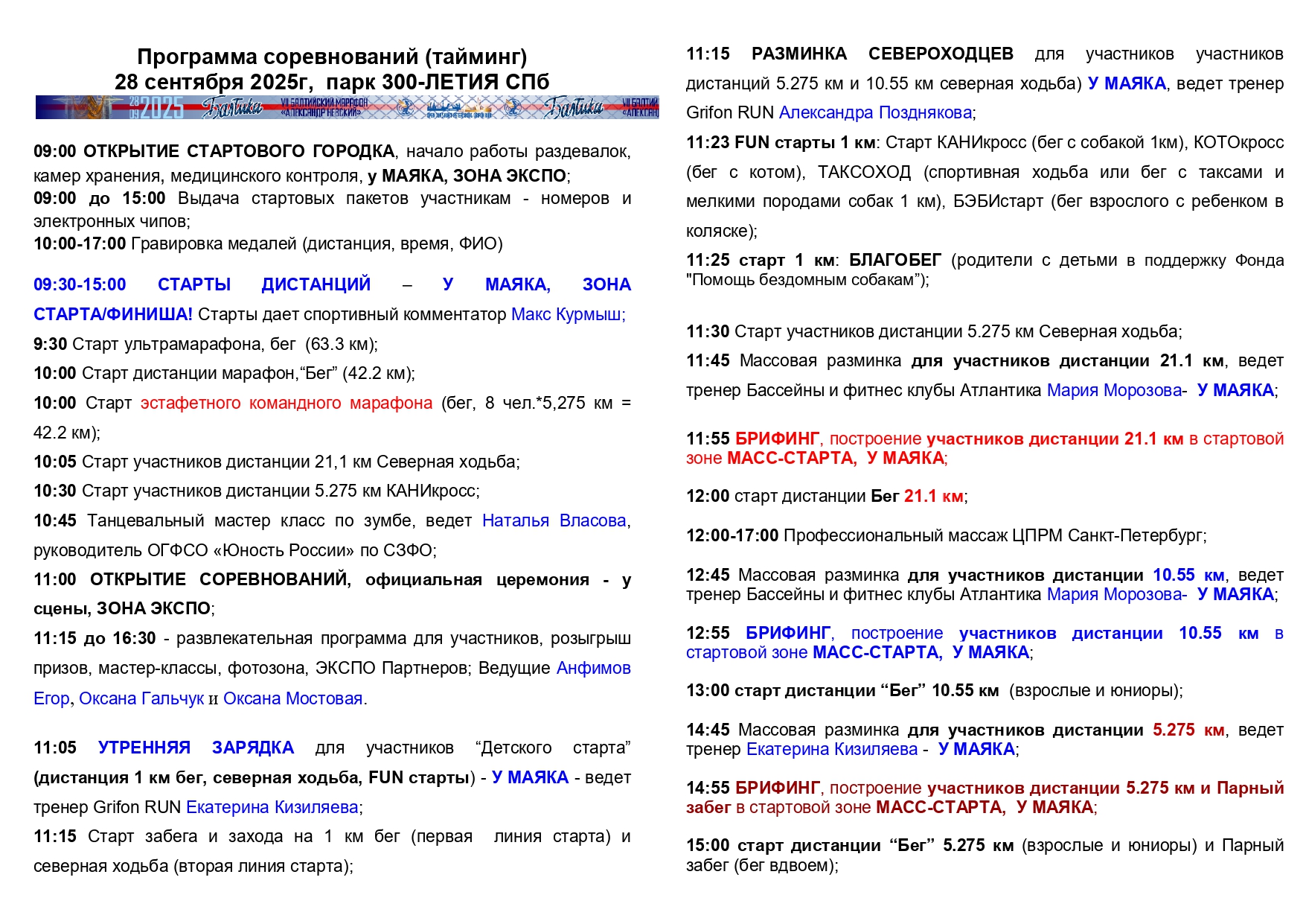 ■ ВЫДАЧА СТАРТОВЫХ ПАКЕТОВ в день старта 28 сентября в стартовом городке в парке 300-летия СПб с 09:00 до 15:00.