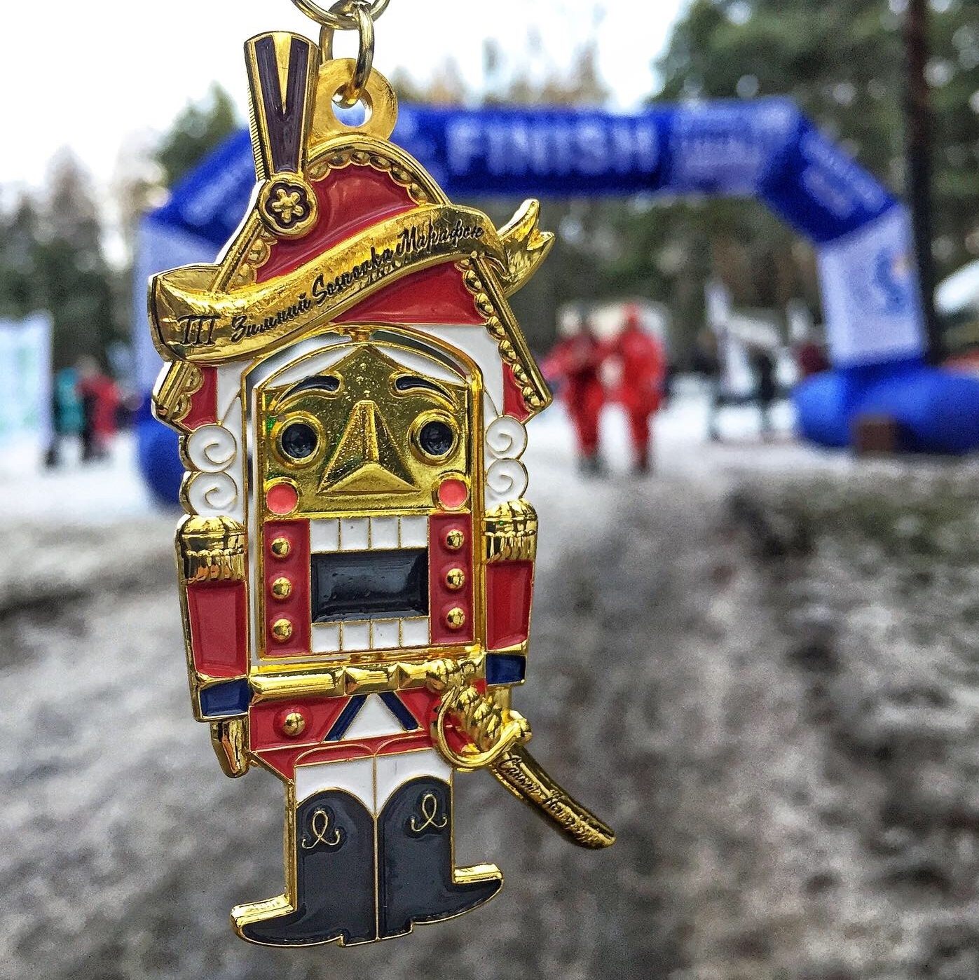 Медаль финишера Новогоднего марафона традиционно новогодняя, сказочная, необычная.