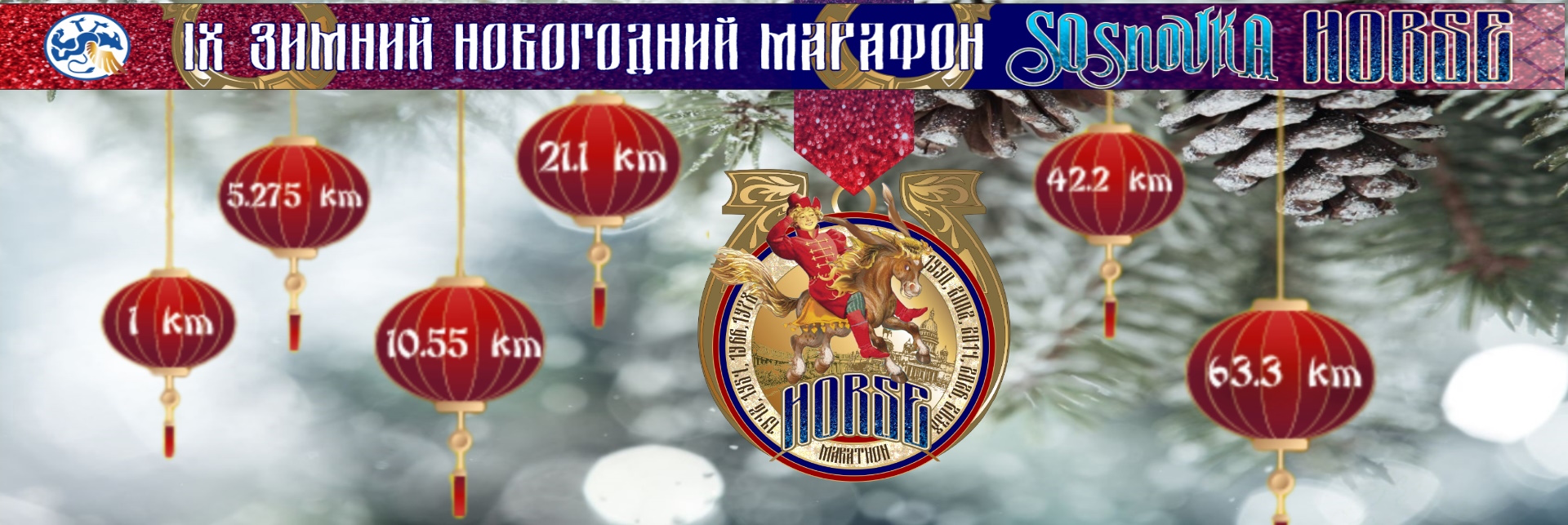 Медаль финишера IX Зимнего Международного Sosnovka Horse марафона традиционно новогодняя, сказочная. Приближающийся 2026 год- год Лошади по восточному календарю, что отражено в медали.