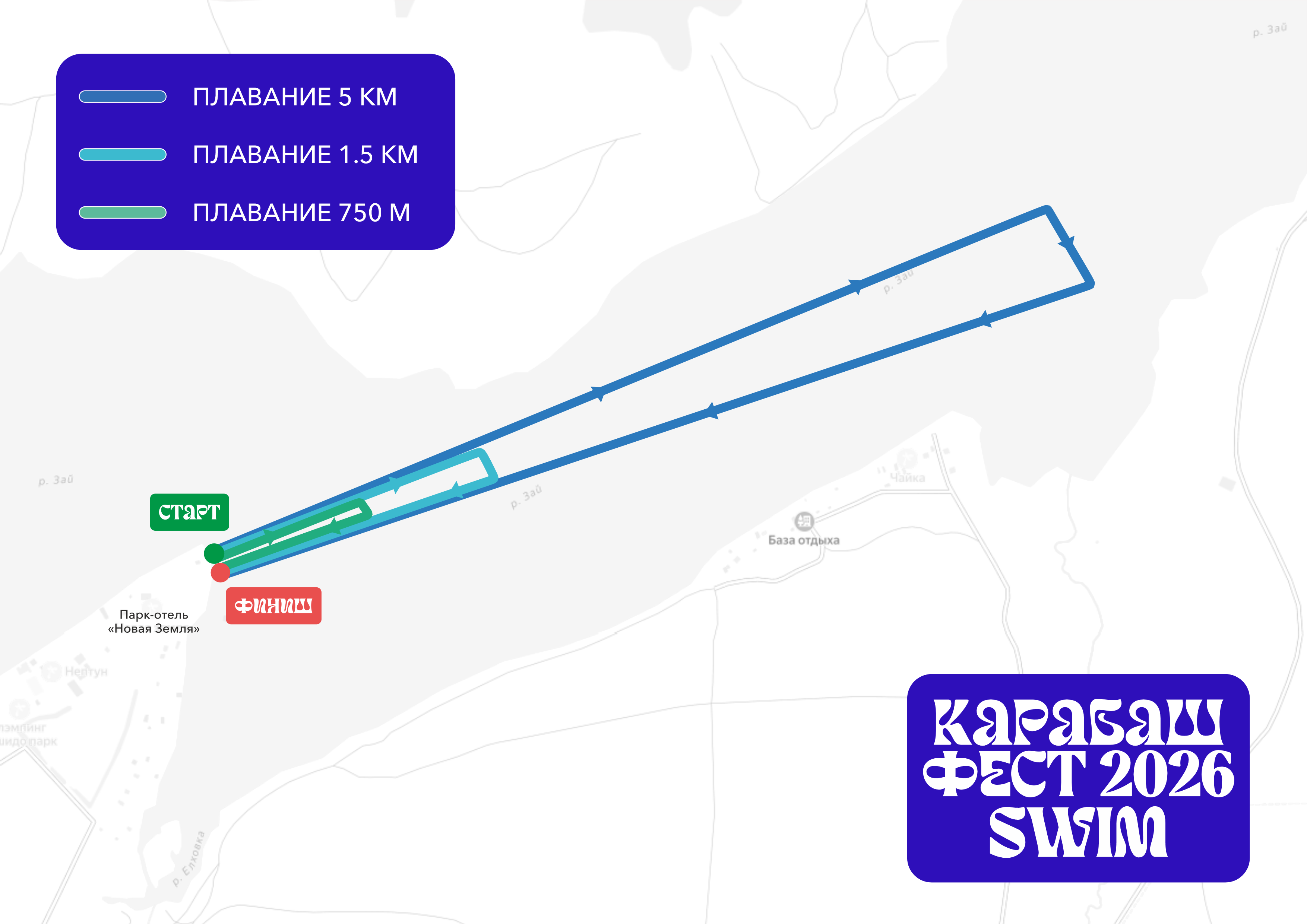 | 07:30–08:45 | Выдача стартовых пакетов участникам заплыва на 5 км |